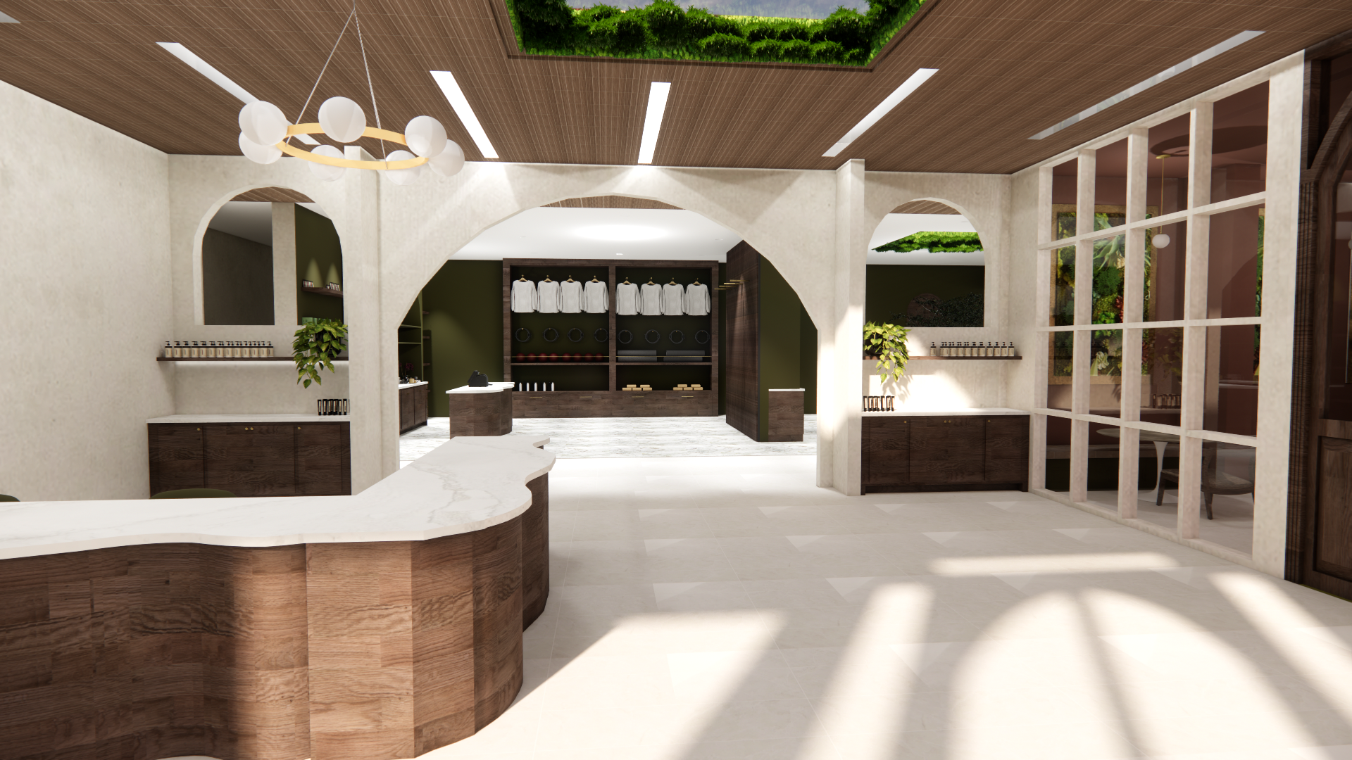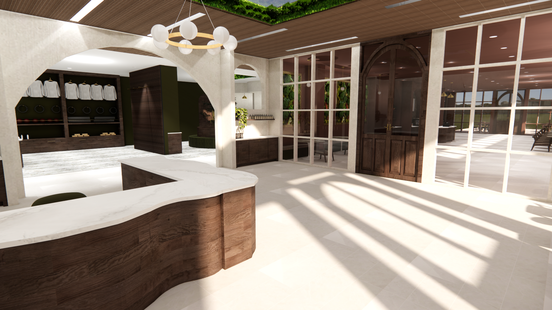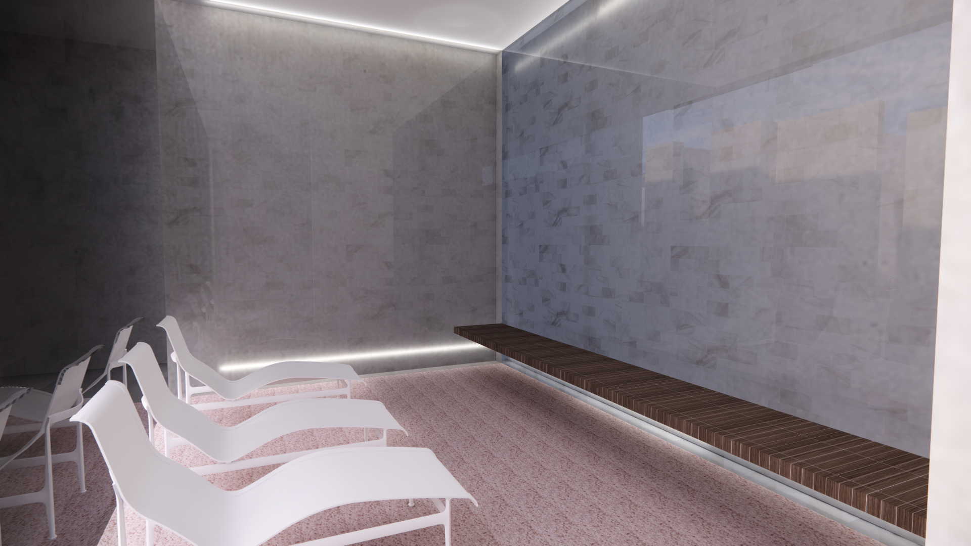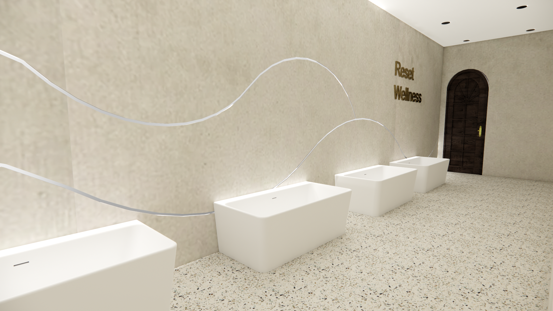 This section features renderings created in Enscape for the Reset Wellness Commercial project. Using the SketchUp model as a base, Enscape allowed me to apply materials, refine lighting, and create realistic visualizations of the interior spaces. These renderings demonstrate my ability to enhance a digital model with atmosphere, texture, and lighting to communicate the overall design concept and mood of the home.