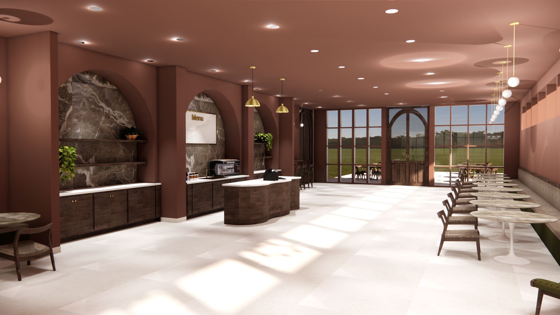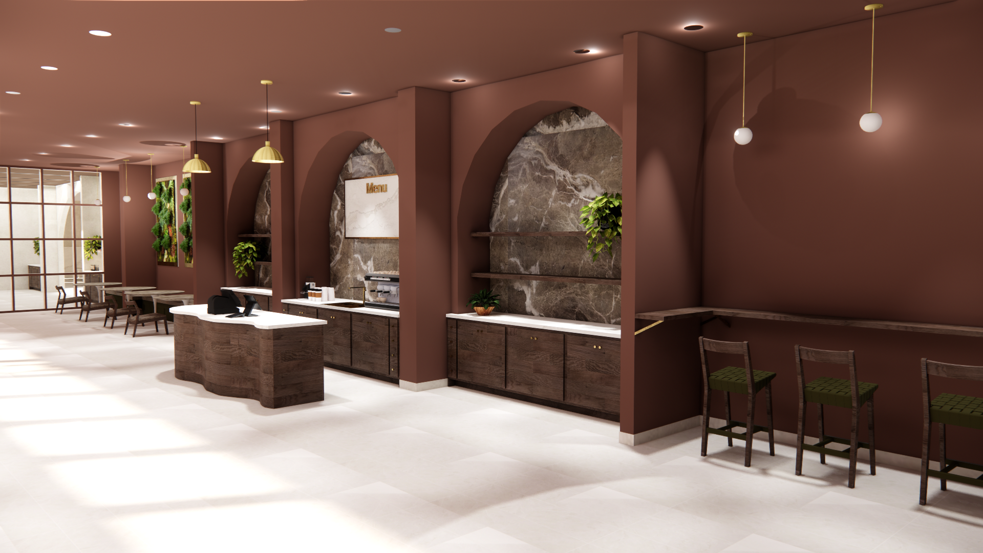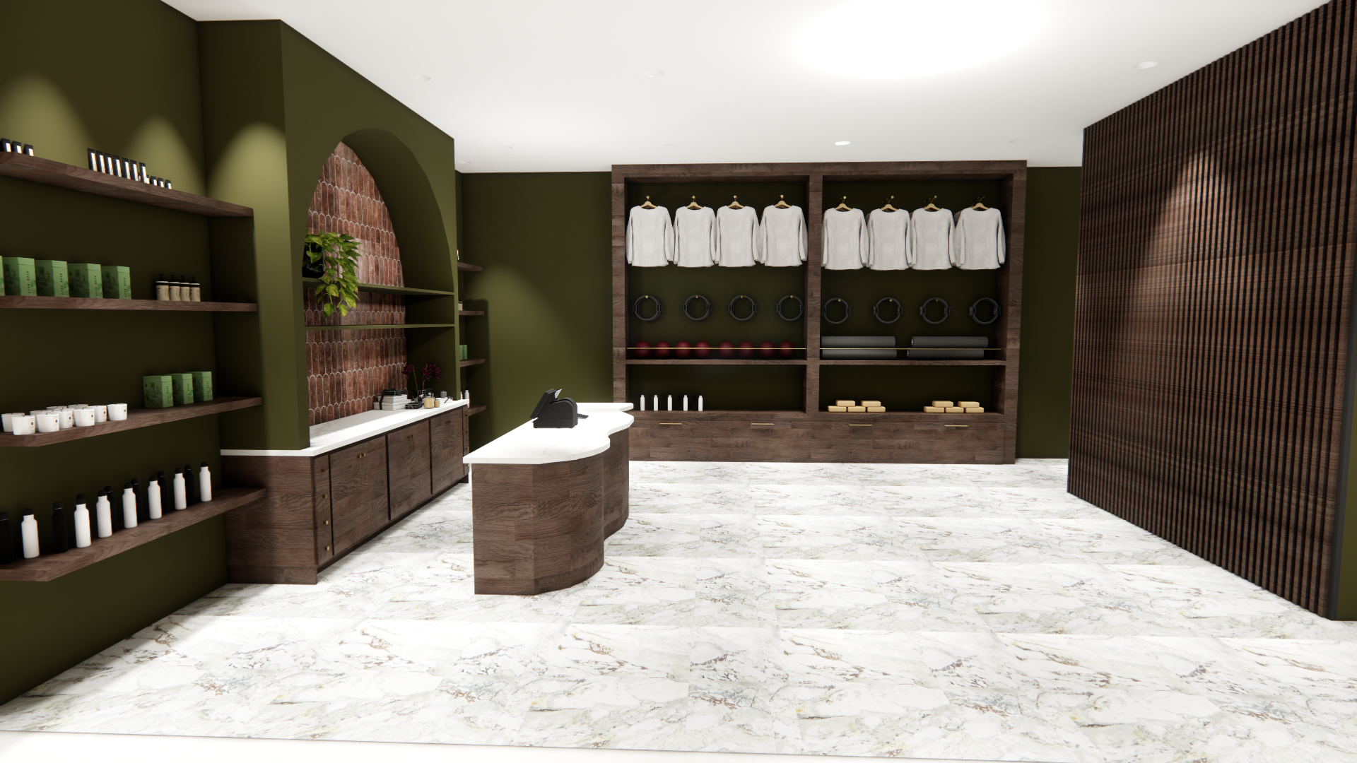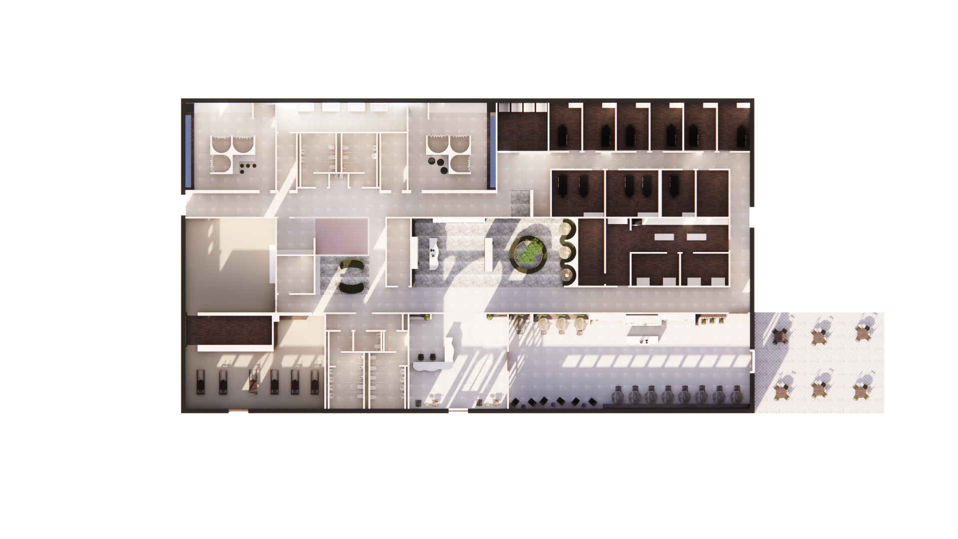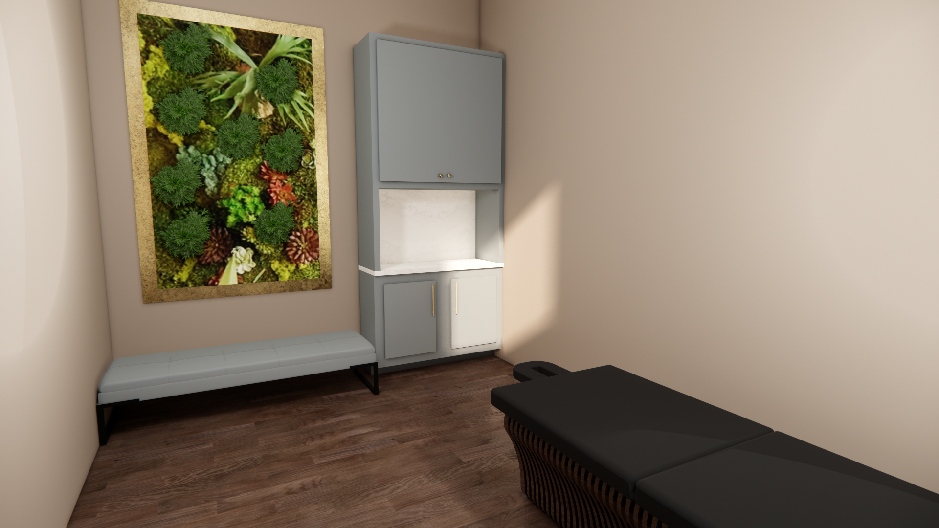 This section features renderings created in Enscape for the Reset Wellness Commercial project. Using the SketchUp model as a base, Enscape allowed me to apply materials, refine lighting, and create realistic visualizations of the interior spaces. These renderings demonstrate my ability to enhance a digital model with atmosphere, texture, and lighting to communicate the overall design concept and mood of the home.