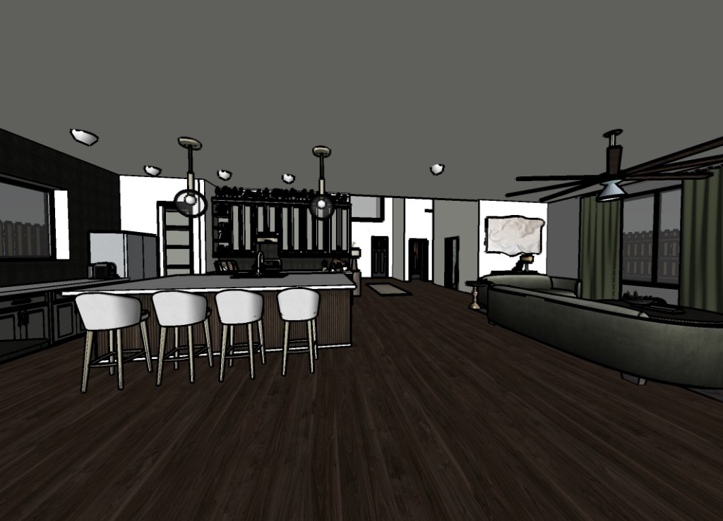 This section highlights my work in residential interior design, showcasing a range of projects that emphasize creativity, functionality, and attention to detail. Projects include a variety of residential spaces, developed through formats such as hand drafting, AutoCAD, Revit, SketchUp, and Enscape. These works demonstrate my ability to translate client needs into thoughtfully crafted environments that reflect both style and livability.